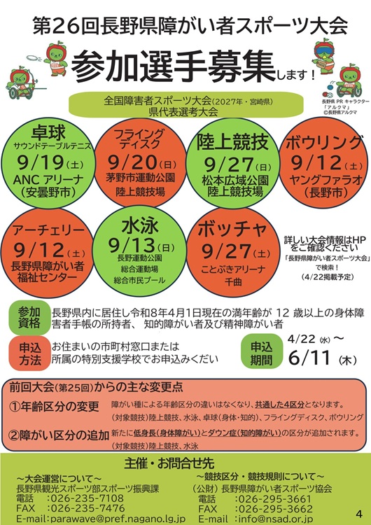 第26回長野県障がい者スポーツ大会について/長野県ホームページ